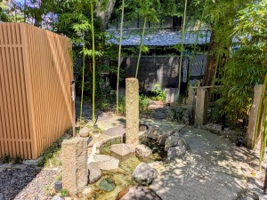 社殿の裏手には涼しげな竹林と水場がありました。