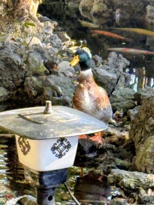 池のそばには鴨さんもいました。