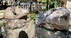 この御利益に感謝した頼朝が、太宰府天満宮から御分霊を勧請して社殿を建立したのが「牛天神」の始まりで、頼朝が夢でお告げを受けた時に腰掛けていた牛の形の岩こそが、現在の「ねがい牛(撫で岩)」です。