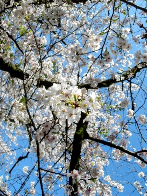 青空に映える淡いピンクの花びらが風に舞って、まさに春爛漫。
